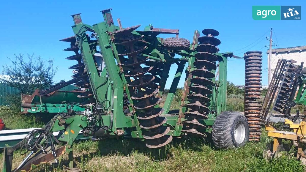 Тяжелая предпосевная дисковая борона 6.6 м. ( Катрос XL ) Оригинальная была 7.5, но из-за того, что в хозяйстве не было 400 + трактора пришлось профессионально укоротить до 6.6. Реально сейчас нужно 330 лошадей для нее, чтобы была идеальная скорость для обработки грунта. Можно и ее использовать как дисковую для основного обработки грунта - регулируется глубина от 5 до 20 см. Вес - 8 т. В достойном состоянии. За 1 проход делает то, что другие за 2 прохода.